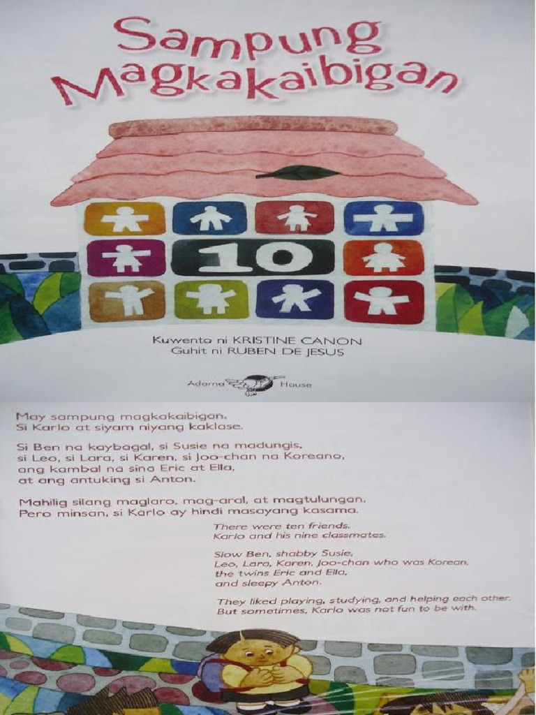 Readers and Teachers are most welcome here. Adarna House Sampung Magkakaibigan storybook. Story by Kristine CanonIllustrations by Ruben de Jesus There were ten friends.