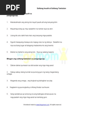 Mga halimbawa ng mga pangungusap na may mga pangngalan at pang-uri. Ang tambalang salita ay salitang. Students are asked to choose from a list the appropriate Filipino compound word tambalang salita to complete.